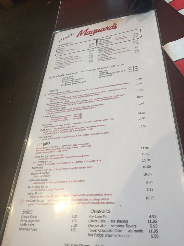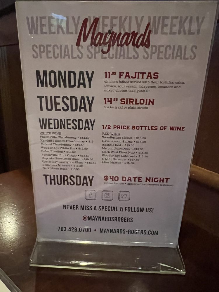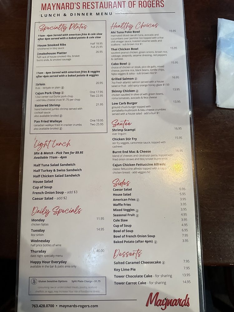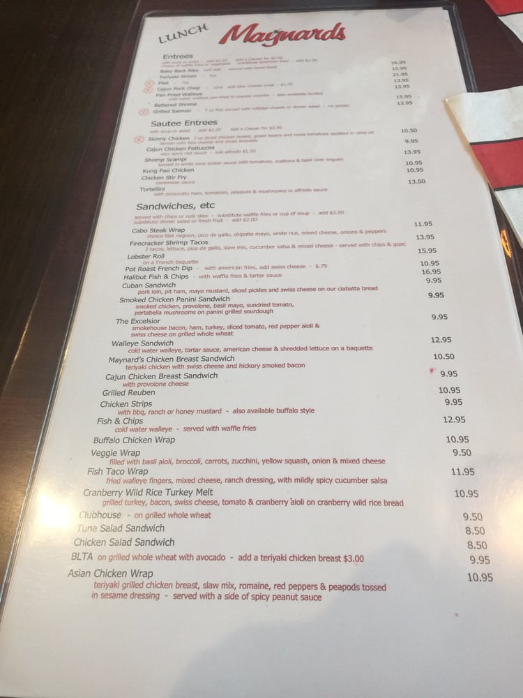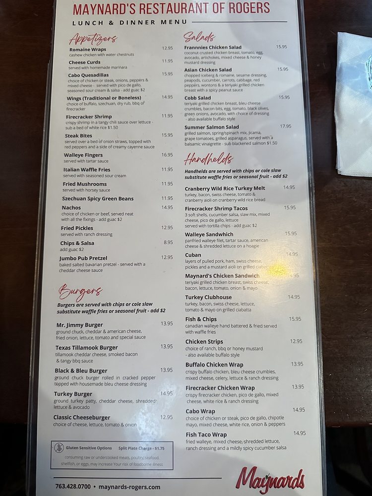 Maynard's Restaurant - Rogers Menu (Update 2025)